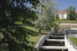 Web-камера на "рыбопроводе", построенном в 2003 году в обход плотины находящейся в черте города ГЭС Merikoski. Не работает зимой. |